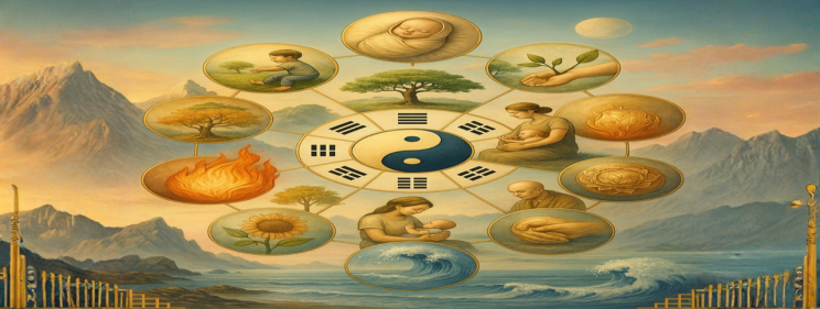 Representan el ciclo completo de la energía vital (Qi): nacimiento → expansión → plenitud → declive → transformación → renacimiento.